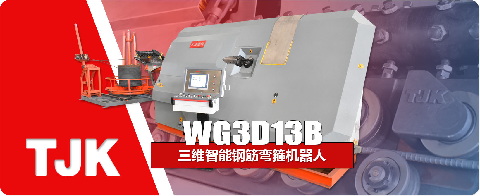 WG3D13B三维智能钢筋弯箍机器人是一款既可以加工平面箍筋,又可以加工立体箍筋的多功能机型,开发了三轴数控联动弯曲技术,可自动加工三维形状的箍筋。一台设备可以满足工程需要的各种平面箍筋及立体箍筋(如马凳筋)的加工。