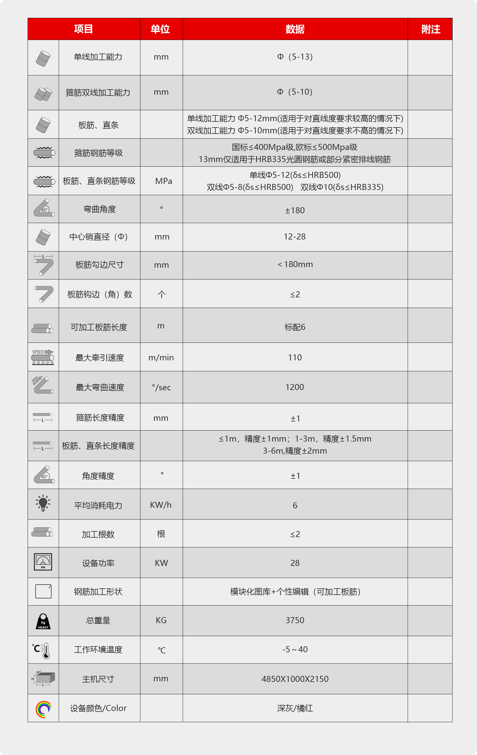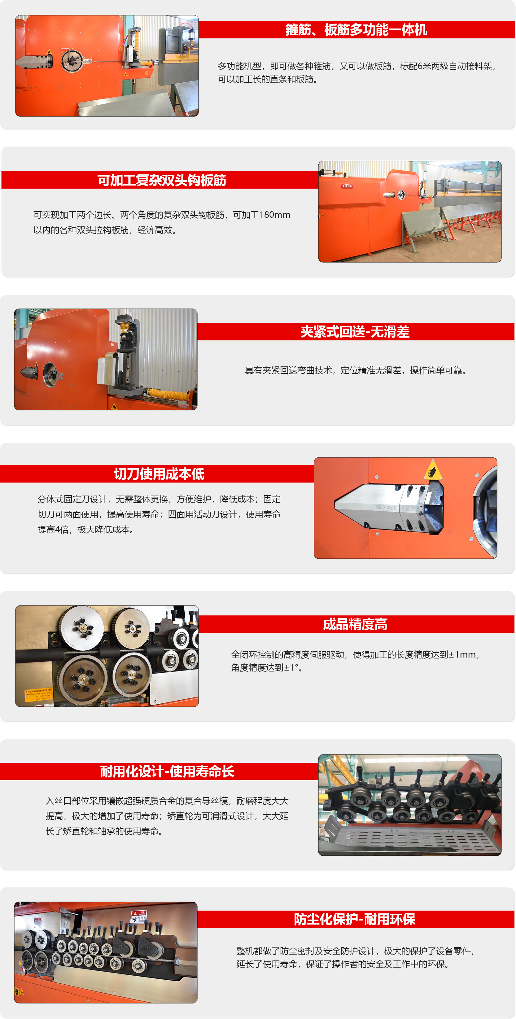 WG12D-1X智能钢筋弯箍机器人既可以加工箍筋,又可以加工常用的长板筋,一机多能,新的回送弯曲设计,可实现加工两个边长、两个角度的复杂双头钩板筋,经济高效。 大量应用于钢筋加工配送及PC工厂。