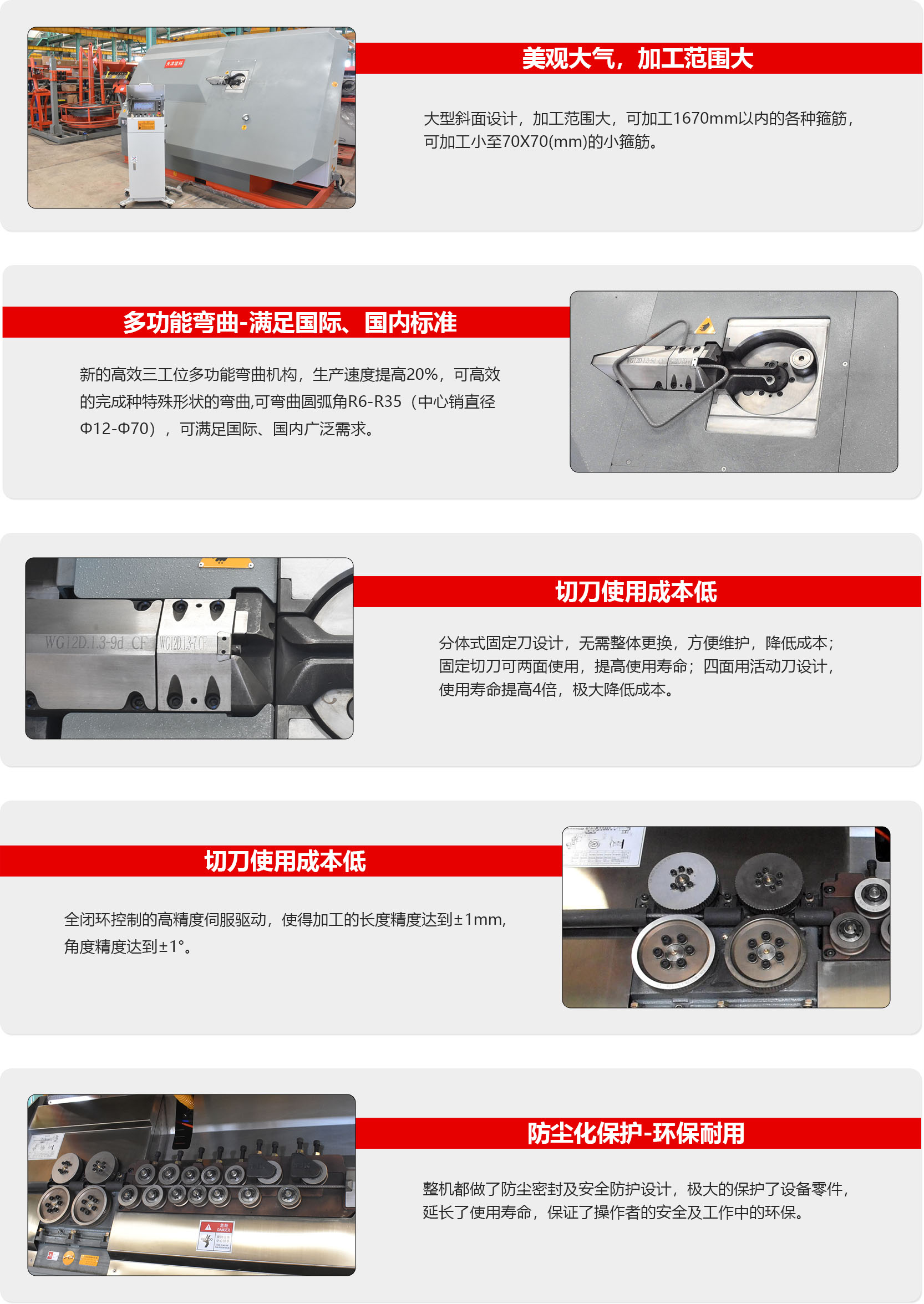 直径Φ12-Φ70),两种弯曲模式,可以弯曲各种特殊形状箍筋。广泛应用于专业配送工厂。