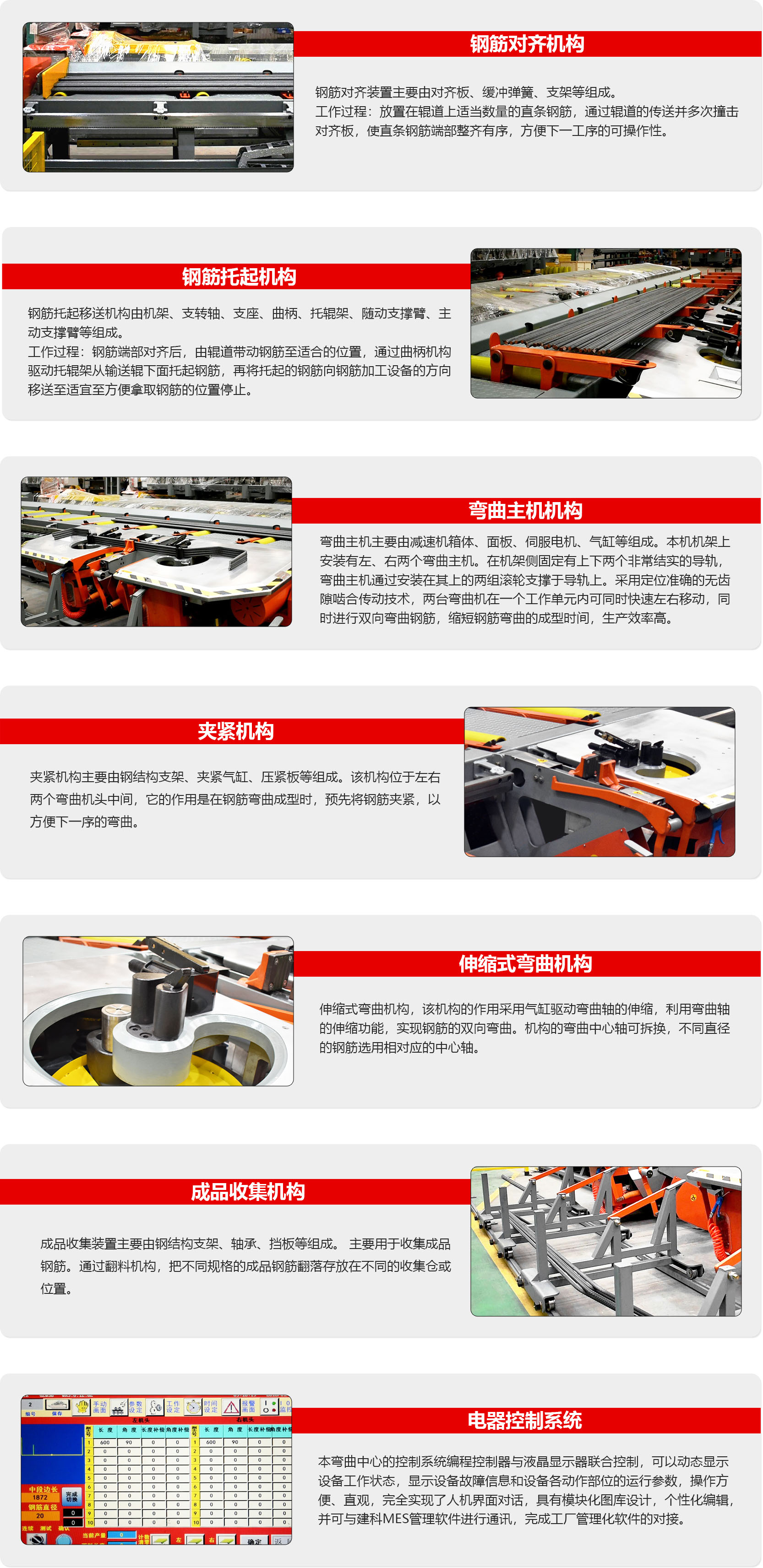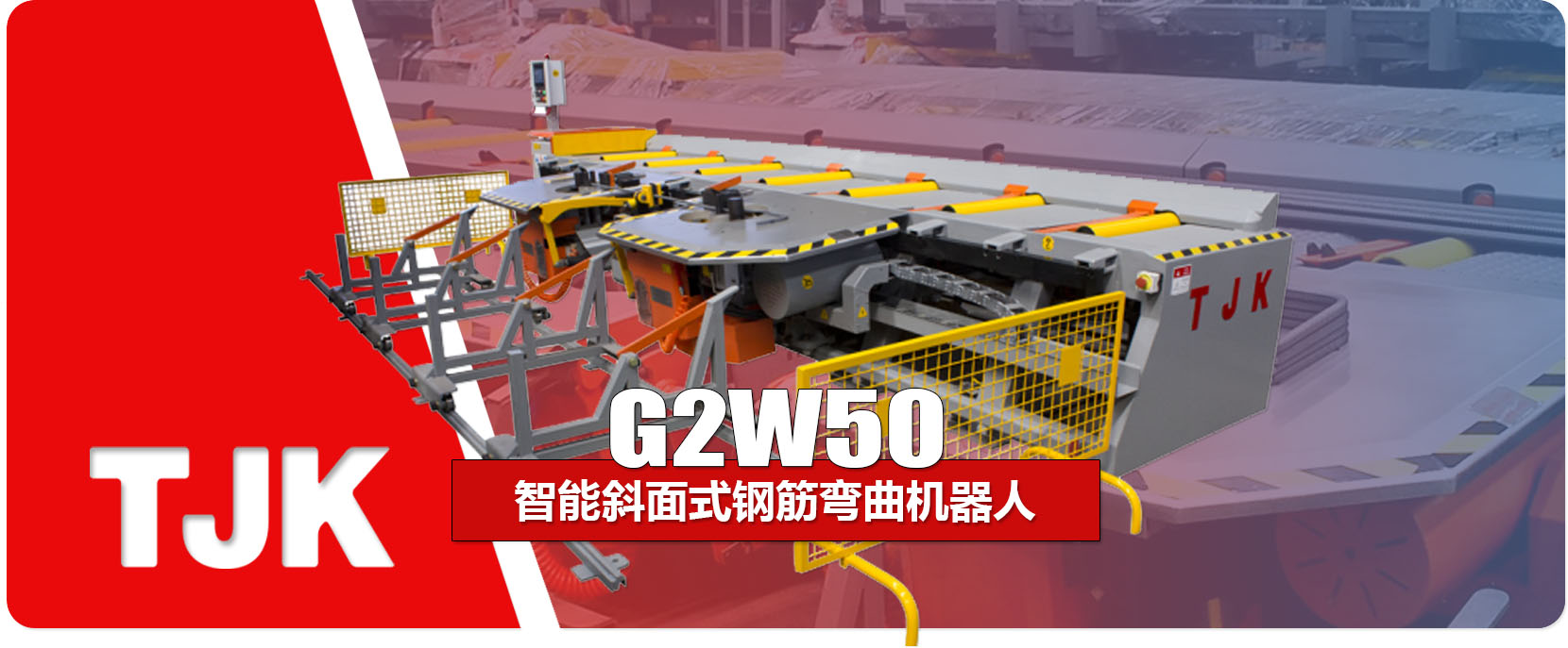 G2W50智能斜面式钢筋弯曲机器人是我公司自主研发、生产的钢筋弯曲设备。该设备可将Φ10-Φ50的钢筋进行输送、弯曲、存储的自动加工生产线。该设备结构紧凑,精度高,操作故障率低、消耗低。