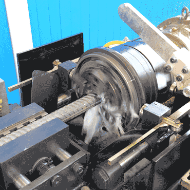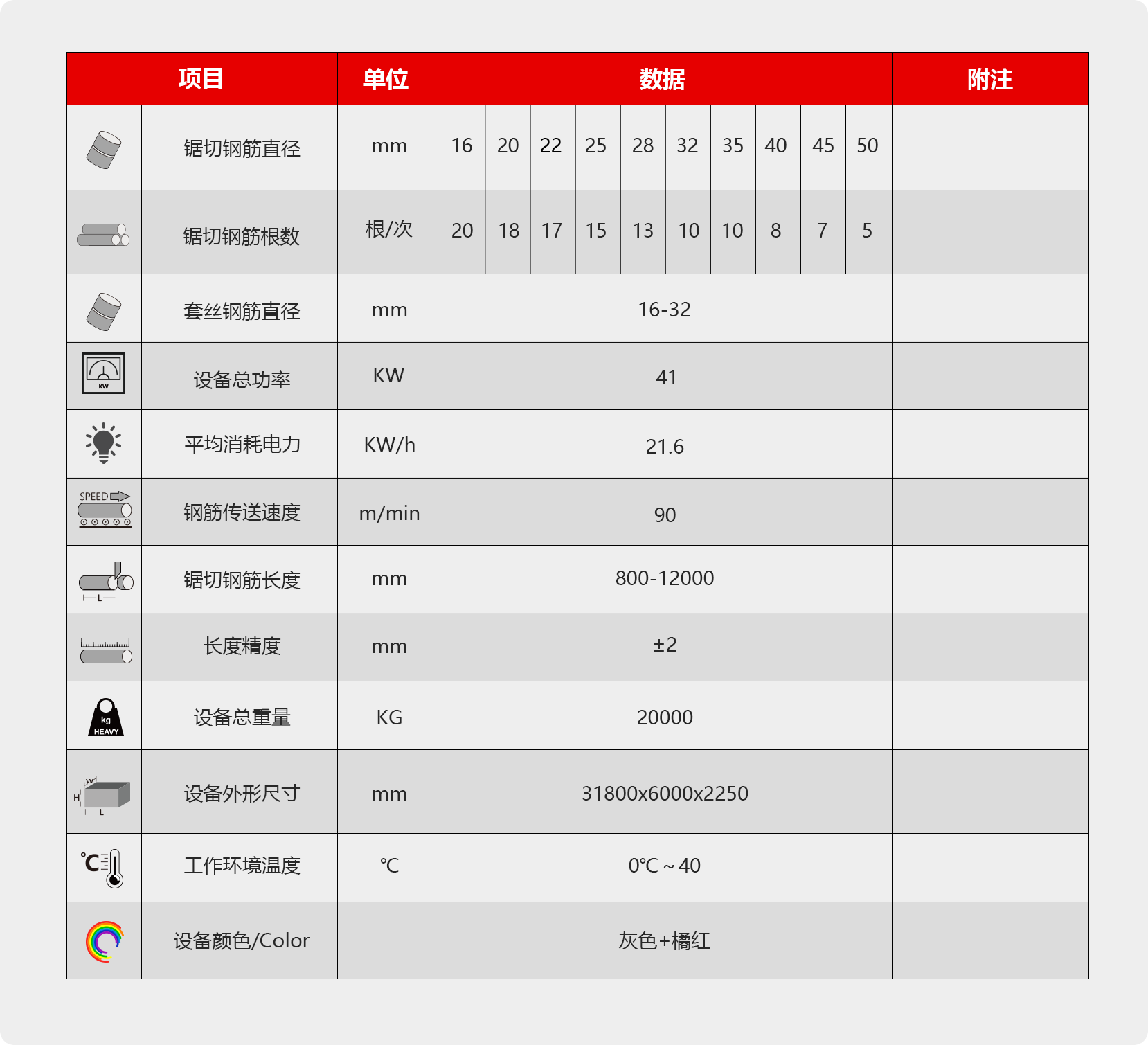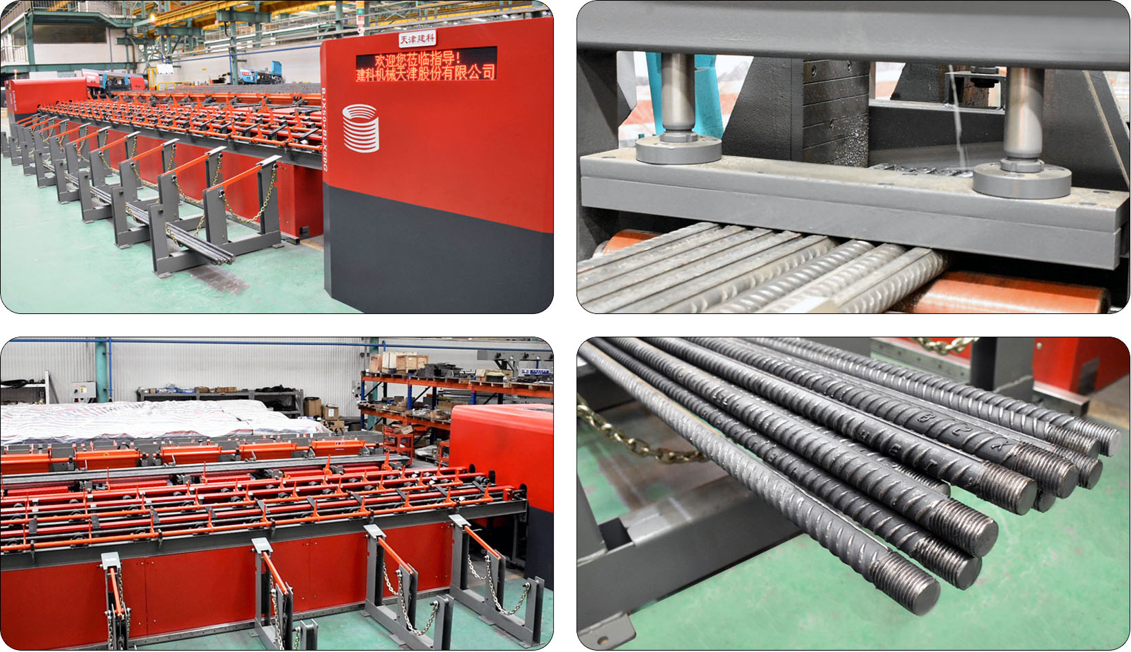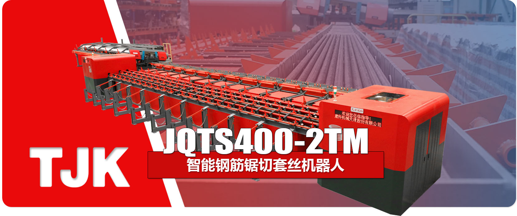 JQTS400-2TM智能钢筋锯切套丝机器人是用于棒材钢筋的锯切、输送、套丝及存储并将各加工工序形成电脑控制的自动加工流水线。锯切采用倾斜式带锯条的设计,使锯切成为一个渐进的过程,科学省力,噪音小;钢筋传送是通过三角带驱动辊道来完成的,无须润滑,无噪音,利于环保;套丝机采用滚丝轮冷轧工艺,钢筋丝头加工“模具化”,精度高。