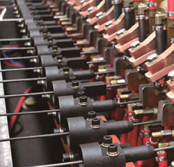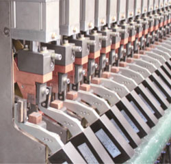 采用直回路焊接设计,焊接单元焊接回路采用一体黄铜铸造,提高焊接效率;焊接气缸采用三倍力气缸双作用机构,设计有气缸快排机构,以提高气缸动作频率。