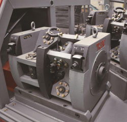 LZ-GZBL12GL2-12数控冷轧带助钢筋生产线大量应用于铁路、基建,并配套焊网机、三角梁使用,冷轧成品钢筋直径12mm-5mm,设备最高速度12m/S,产能强大。主机采用一体机形式,占地空间小,安装方便。主机封闭式设计,自动化卫生环保。拉拔机采用两档变速拉拔,充分发挥电机功率,大大的提高了设备产能,降低能耗。收线机采用立式双工字轮全自动收线,实现自动抓取钢筋、自动剪切、自动固定钢筋与一体,工字轮自动切换仅需15s时间,安全与效率共赢。