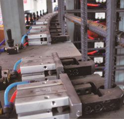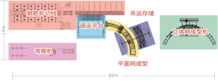 管片立体网生产线由主筋定尺剪切部分、物流调运部分、平面网焊接成型部分,立体网焊接成型部分四大模块组成。