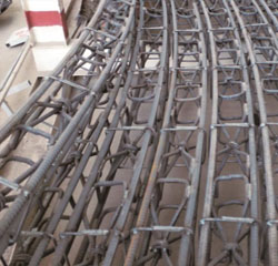 棒材定尺剪切1人,平面网焊接成型1人,钢筋入模、成品脱模2人,立体网焊接成型1人。
