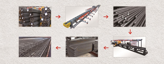棒材钢筋剪切弯曲自动化加工流程 桥梁桩基钢筋笼自动化加工流程