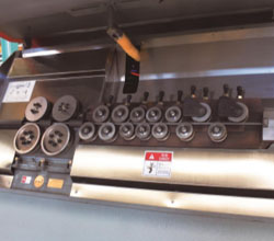 JQTS400-2TM数控钢筋锯切套丝生产线采用流水线的设计理念,具备多级的原料和成品存储机构,原料经储料平台输送至锯切主机并完成高速锯切,锯切完成后钢筋输送至套丝导料平台,经输送辊道分别对钢筋的两端进行套丝打磨。设备的主要机构包括:钢筋储料站、前输送装置、钢筋锯切主机、后输送装置、钢筋存储部分、自动套丝、操作台控制部分。