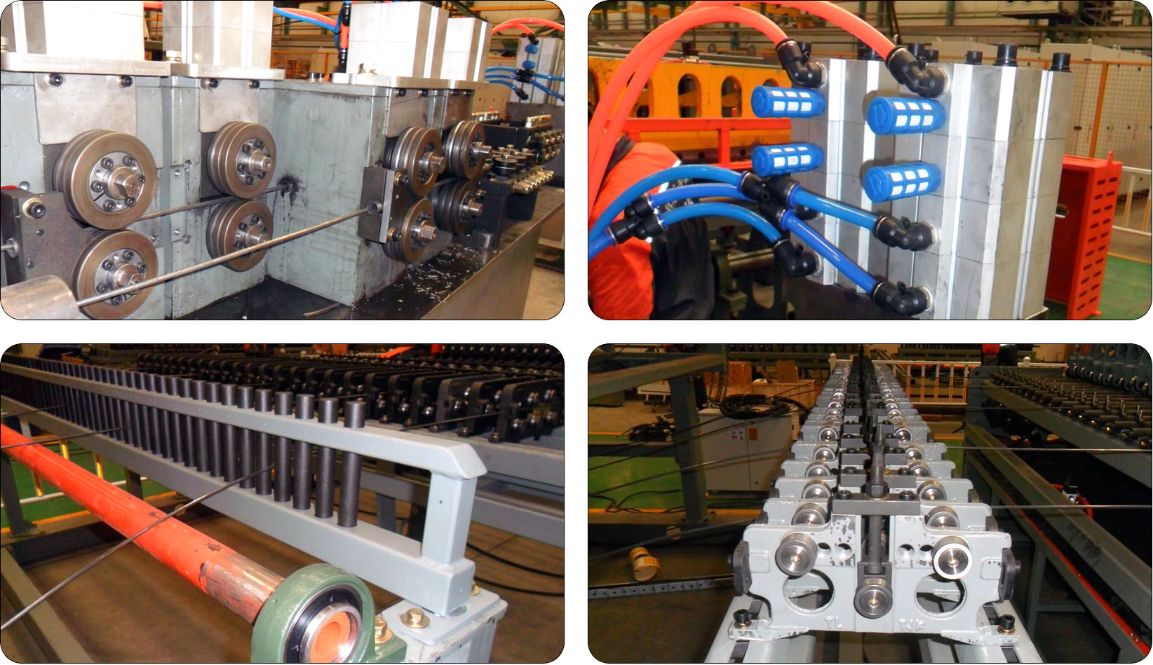 在原有焊网机设备的基础上,经过生产实践同时又结合市场实际需求而进行研制、 生产的焊接钢筋网的成套设备,该设备横筋采用直条上料,纵筋采用盘条上料,焊接速 度快,设备运行稳定。生产线技术涵盖了发明专利(包括发明专利号分别为:2011101 43437.7、201110126533.0等专利),主要使用领域主要包括国内外专业化的围栏, 建筑、矿山等。