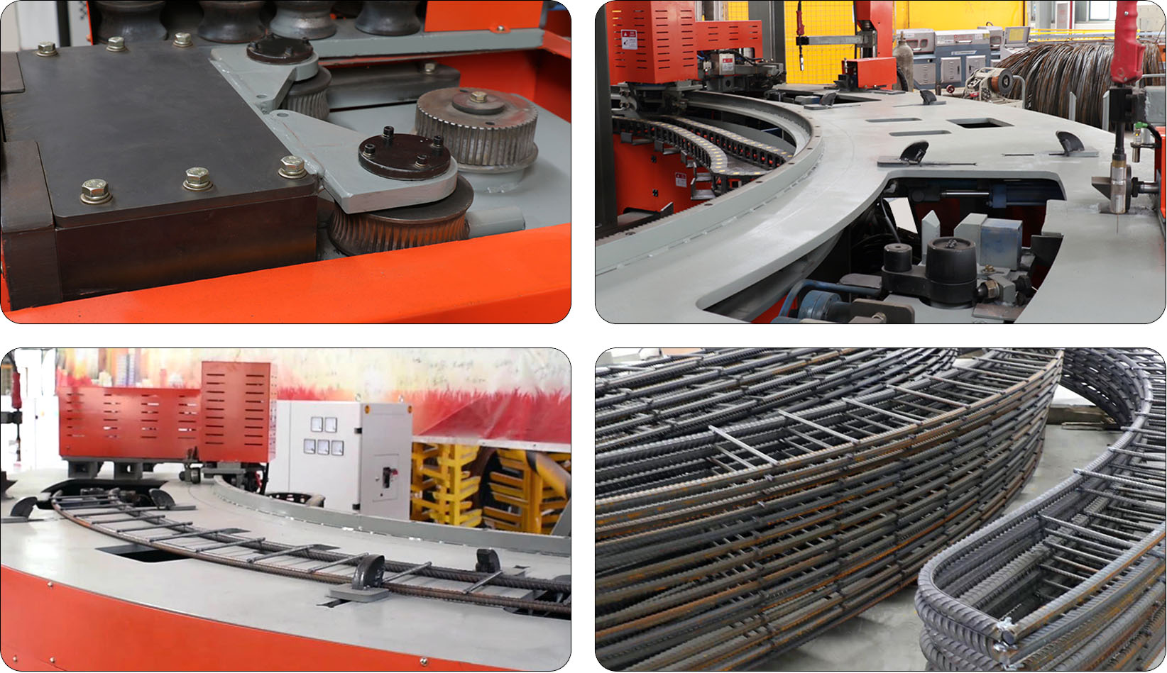 该设备主要应用在地铁、隧道等场合,用于盾构管片钢筋笼的单片网的加工,可自动完成直条钢筋弯弧、弯钩、输送、横筋和主筋的焊接以及主筋端头的拼焊,加工过程一次 成型,最大条件的保证网片成品的质量精度,并且较少网片生产环节中物料转运环节,提 高了生产效率。该设备的特点是速度快,精度高,一致性好,实用,可靠,非常受国内、 外客户的信赖与青睐,并且具有强大的任务储存能力,更换生产任务方便、快捷。
