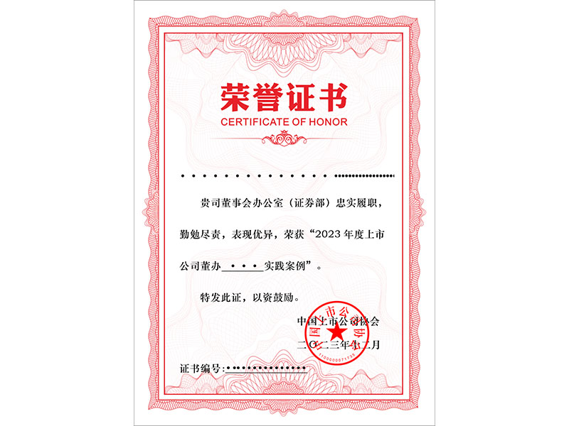 优秀实践案例证书